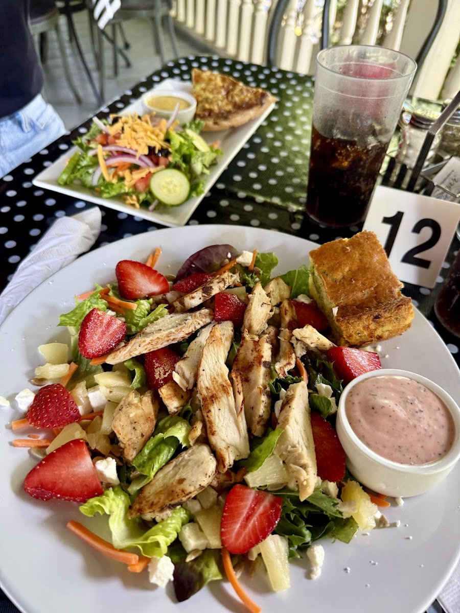 The fresh salads, especially the abundant Cobb Salad, are celebrated for their plentiful toppings that burst with freshness, making it a great option for those seeking lighter fare. The quiche, lovingly served with a side of chicken salad, delivers a harmonious blend of flavors that are sure to enchant your taste buds.
